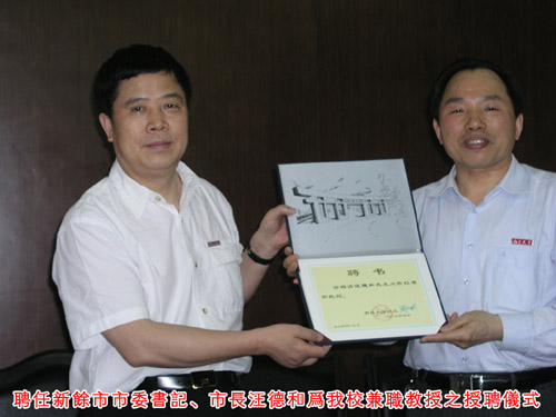 新余市委书记、市长汪德和受聘为我校兼职教授并作学术报告